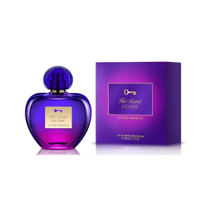 Her Secret Desire de Antonio Banderas es una fragancia de la familia olfativa Floral Frutal Gourmand para Mujeres. Her Secret Desire se lanzó en 2019. Las Notas de Salida son frambuesa y bergamota; las Notas de Corazón son violeta, raíz de lirio, jazmín de la India y neroli; las Notas de Fondo son vainilla, sándalo y abeto balsámico.
