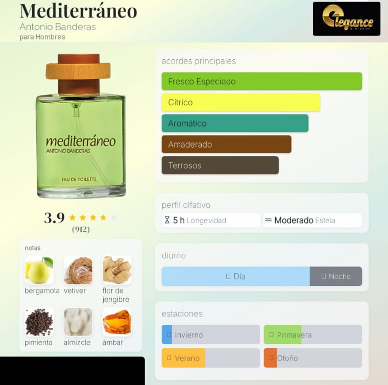 Mediterráneo de Antonio Banderas es una fragancia de la familia olfativa Amaderada Aromática para Hombres. Mediterráneo se lanzó en 2001. La Nariz detrás de esta fragrancia es Rosendo Mateu.