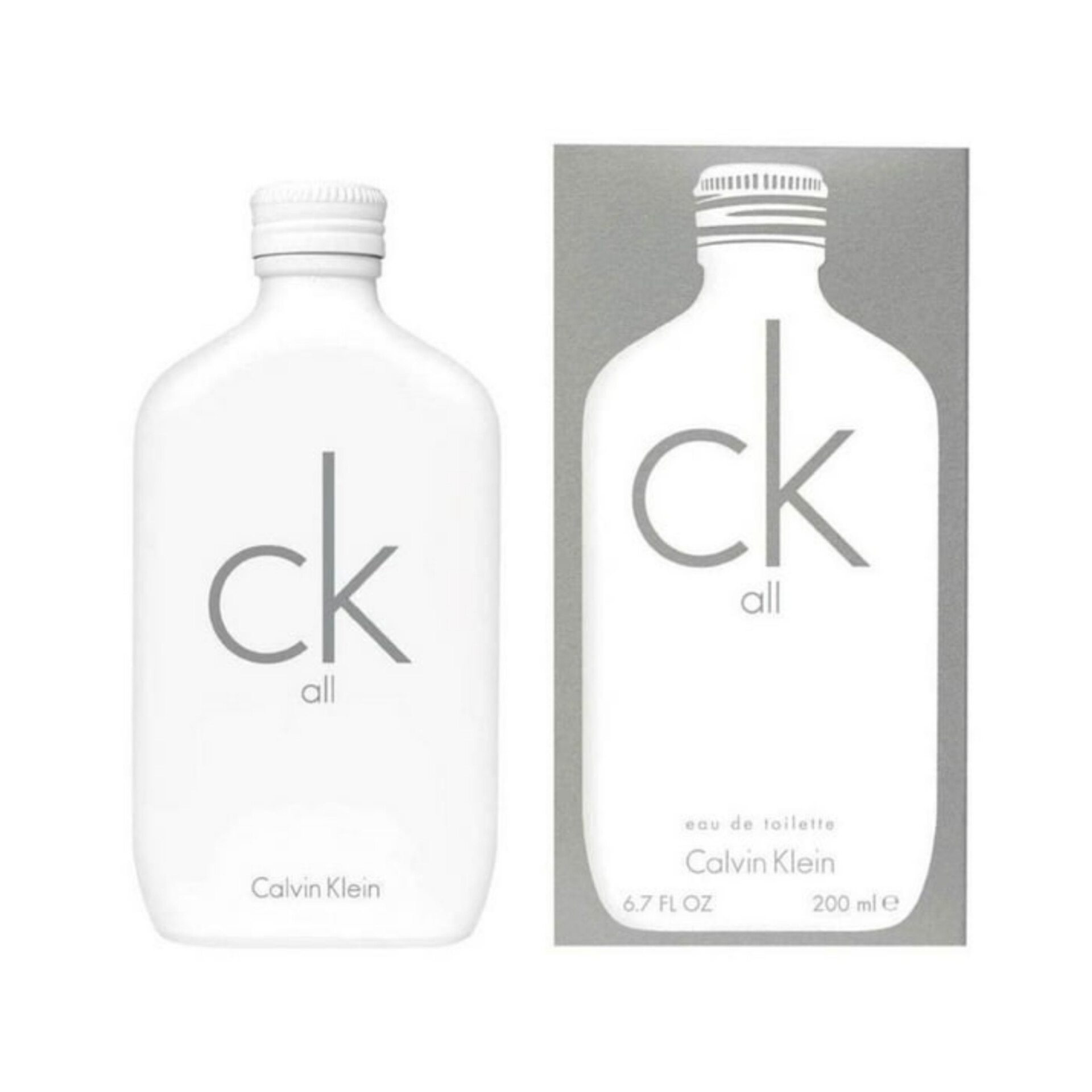 CK All de Calvin Klein es una fragancia de la familia olfativa Cítrica para Hombres y Mujeres. CK All se lanzó en 2017. CK All fue creada por Alberto Morillas y Harry Fremont. Las Notas de Salida son bergamota, mandarina y flor del pomelo; las Notas de Corazón son jazmín, ruibarbo, fresia y azucena; las Notas de Fondo son almizcle, ámbar y vetiver.