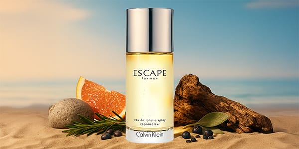Escape for Men de Calvin Klein es una fragancia de la familia olfativa Aromática Verde para Hombres. Escape for Men se lanzó en 1993. La Nariz detrás de esta fragrancia es Steve DeMercado. Las Notas de Salida son melón, eucalipto, mango, toronja (pomelo), enebro de Virginia y bergamota; las Notas de Corazón son notas marinas, abedul, abeto, ciprés, romero y salvia; las Notas de Fondo son musgo de roble, vetiver, sándalo, ámbar y pachulí.