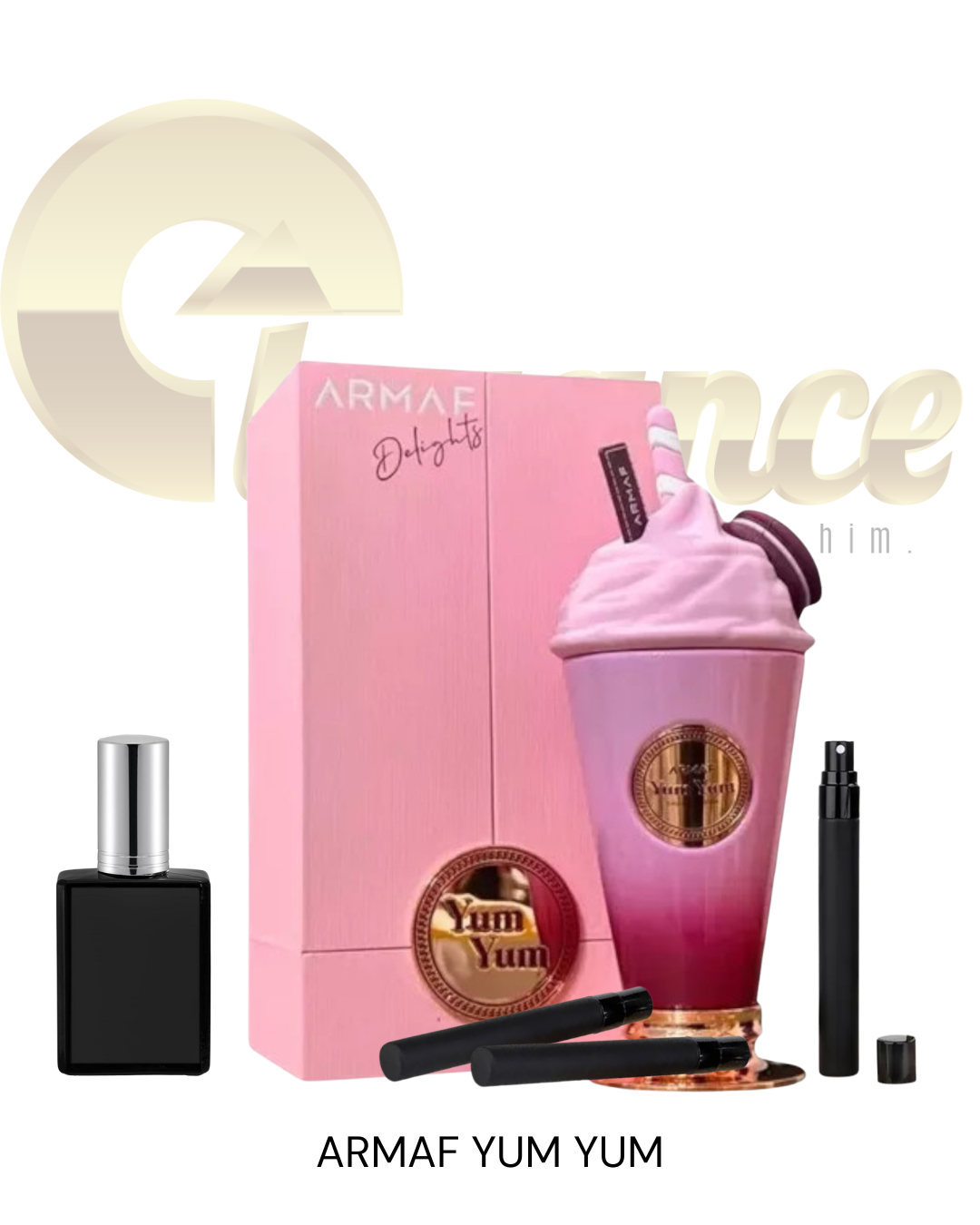 Yum Yum de Armaf es una fragancia de la familia olfativa Floral Frutal para Mujeres. Esta fragrancia es nueva. Yum Yum se lanzó en 2024. Las Notas de Salida son bayas silvestres, cereza, naranja y bergamota; las Notas de Corazón son rosa, flores blancas y vainilla; las Notas de Fondo son notas atalcadas, almizcle y ámbar.