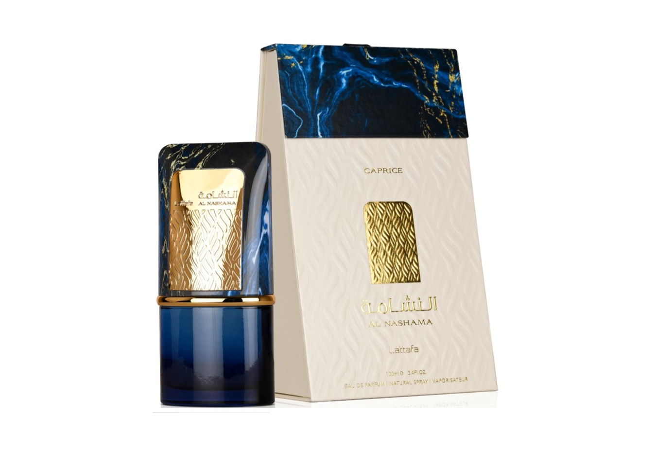 Al Nashama Caprice de Lattafa Perfumes es una fragancia de la familia olfativa para Hombres y Mujeres. Esta fragrancia es nueva. Al Nashama Caprice se lanzó en 2024. Las Notas de Salida son cardamomo, jengibre, bergamota y limón (lima ácida); las Notas de Corazón son lavanda, geranio y menta; las Notas de Fondo son ámbar, cedro, pachulí y vetiver.