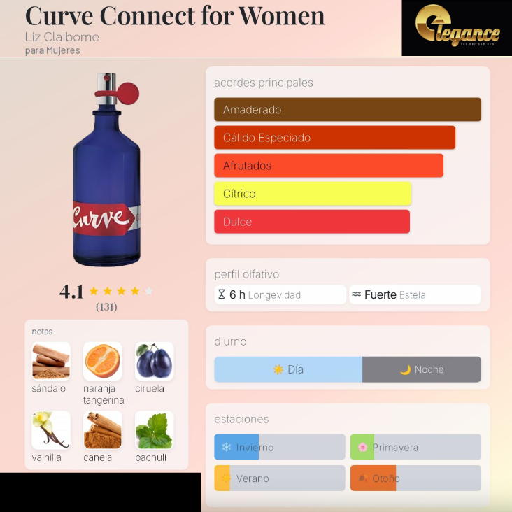 Curve Connect for Women de Liz Claiborne es una fragancia de la familia olfativa Aromática Frutal para Mujeres. Curve Connect for Women se lanzó en 2008.