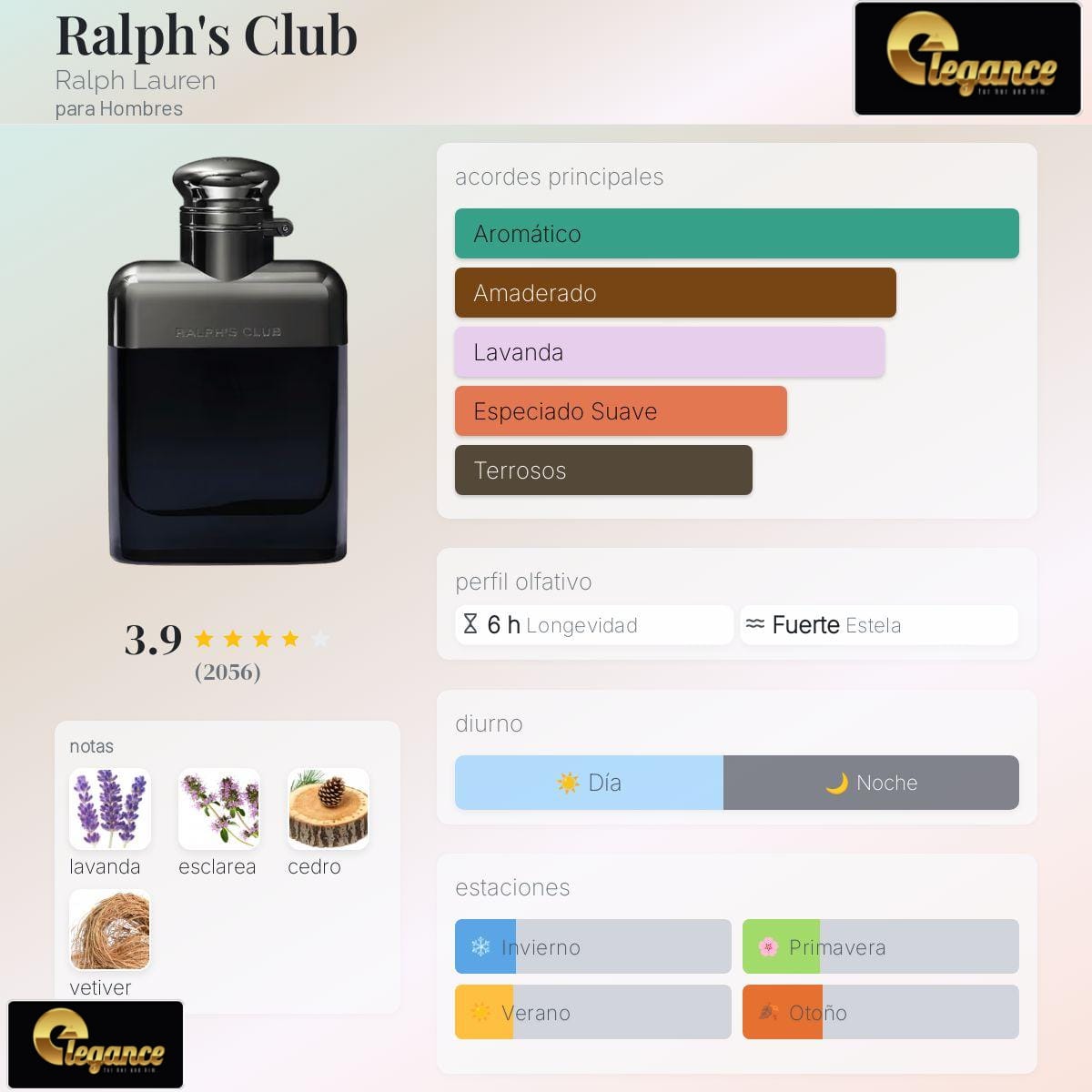 Ralph’s Club de Ralph Lauren es una fragancia de la familia olfativa Amaderada para Hombres. Ralph’s Club se lanzó en 2021. Ralph’s Club fue creada por Dominique Ropion y Claire Liégent. Las Notas de Salida son lavanda y esclarea; la Nota de Corazón es cedro de Virginia; la Nota de Fondo es vetiver.
